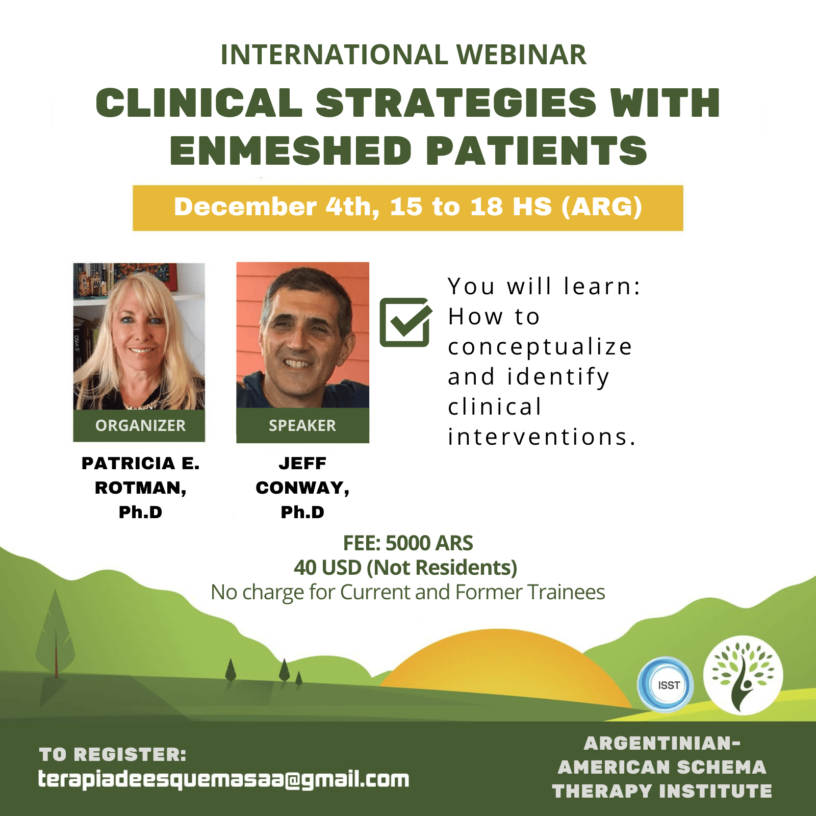 Welcome to the Argentinian-American Schema Therapy Institute website. Our mission is to offer training in this effective evidence – based psychotherapy. Our clinical department also offers you the possibility to do psychotherapy with one of our excellent mental health professionals. If you are a mental health professional you can sign up for our schema therapy training (in Spanish) that will lead to the international certification of the International Schema Therapy Society